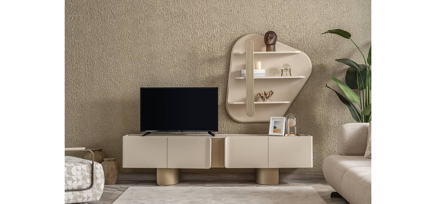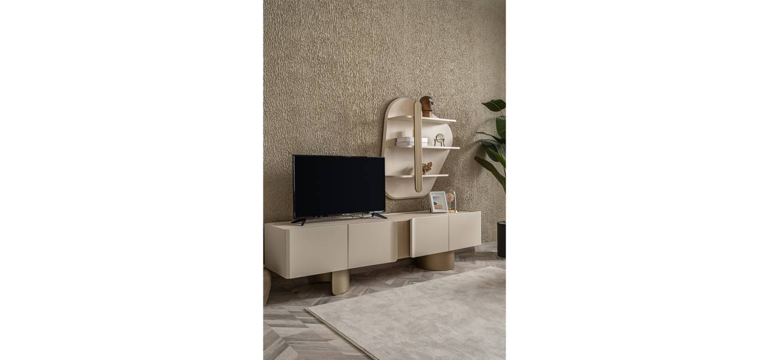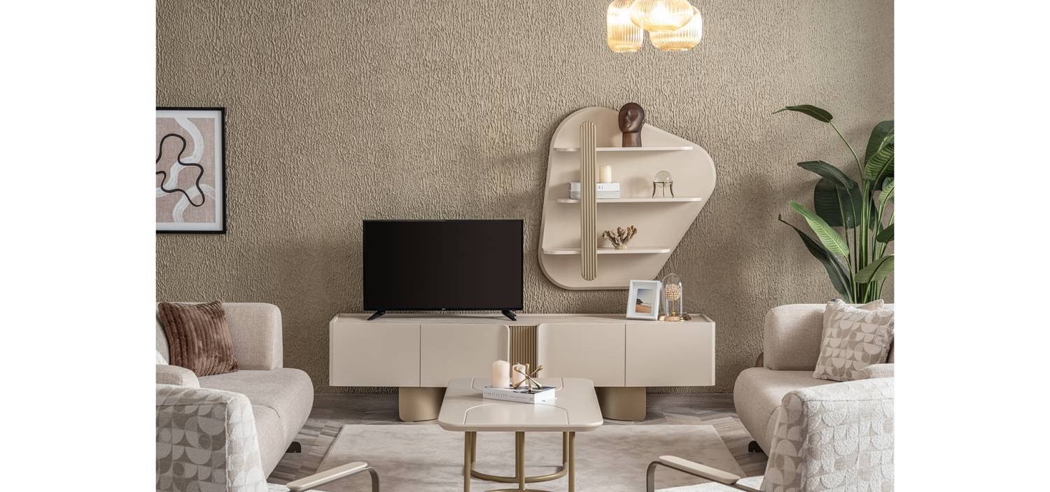 Alanya Duvar Ünitesi, sade hatları ve doğal tonları ile modern yaşam alanlarına uyum sağlar. Oval hat detayları ve minimalist tasarımı salonunuza zarif bir dokunuş katar.