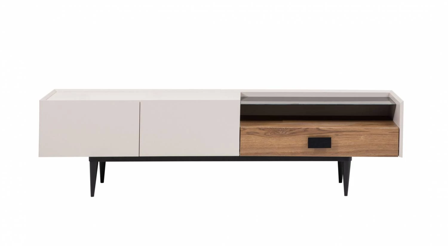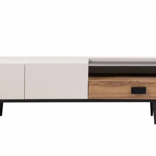 Alt blok geniş depolama alanı sunar; üst blok raflı veya kapaklı modülleri ile dekoratif objeler, kitaplar ve elektronik ekipmanlar için kullanışlı alanlar sağlar.