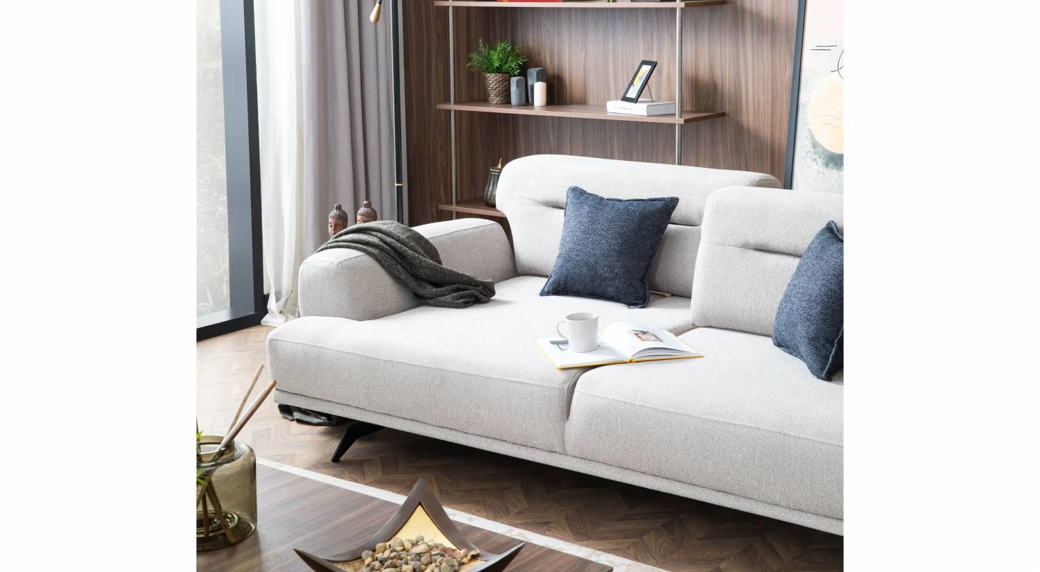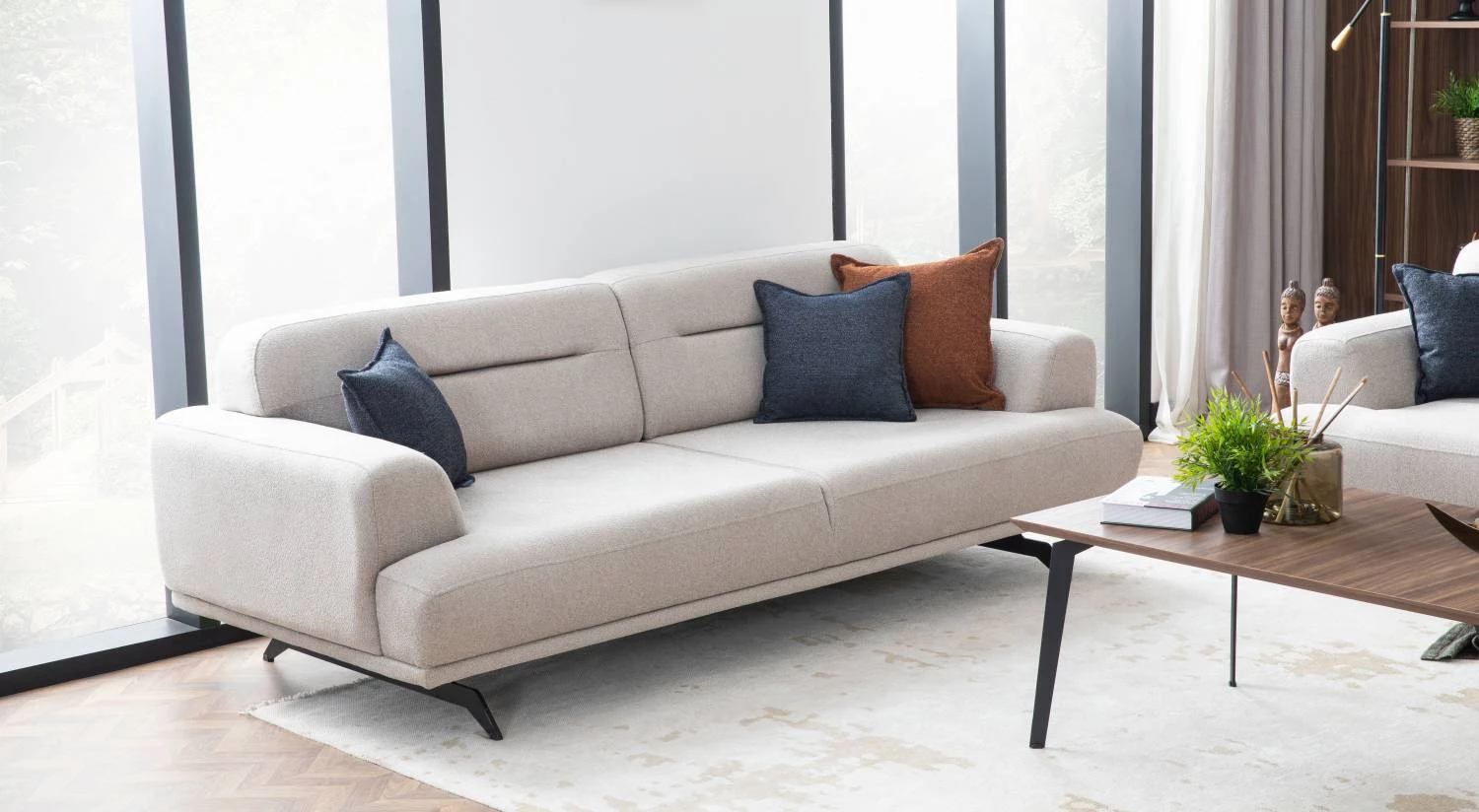 Aqua Koltuk Takımı – Bej/Lacivert sade ve modern hatlarla tasarlanmıştır. Bej ve lacivert renk kombinasyonu salon dekorasyonuna estetik bir vurgu yapar.