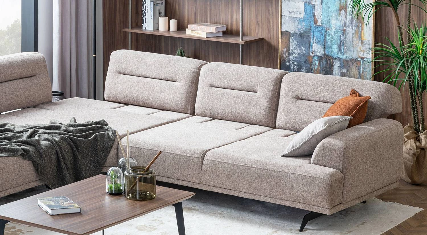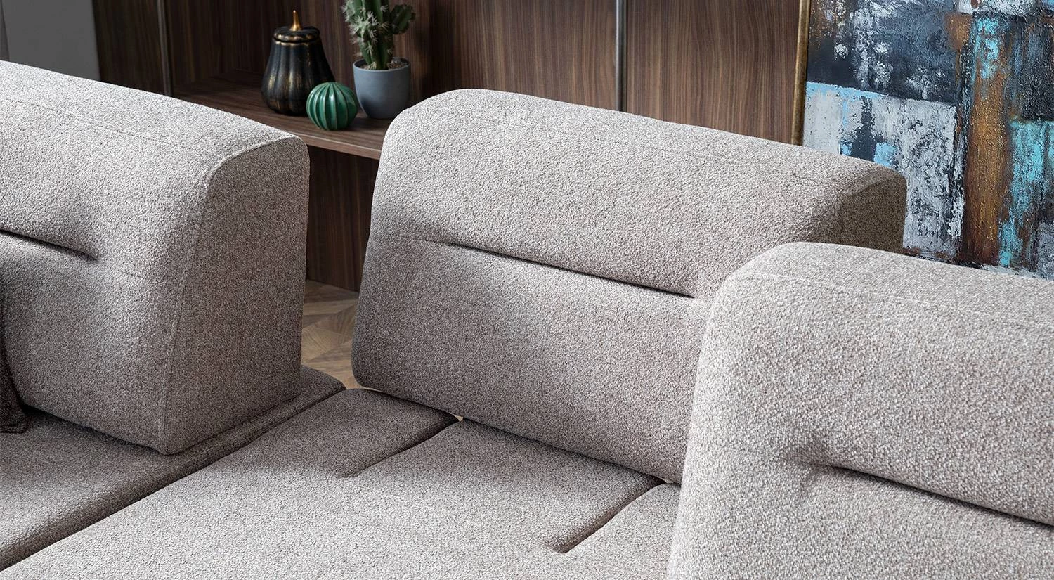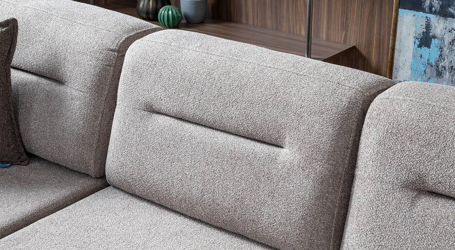 Aqua Large Köşe Takımı – Gri, minimalist hatlara sahip sade tasarımıyla farklı dekorasyon stilleriyle uyum sağlar. Gri renk seçeneği salonunuza modern ve dengeli bir görünüm kazandırır.