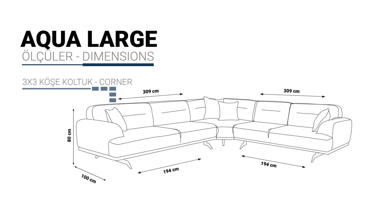 | Köşe Takımı (dıştan dışa) | 309 cm | 277 cm | 80 cm |