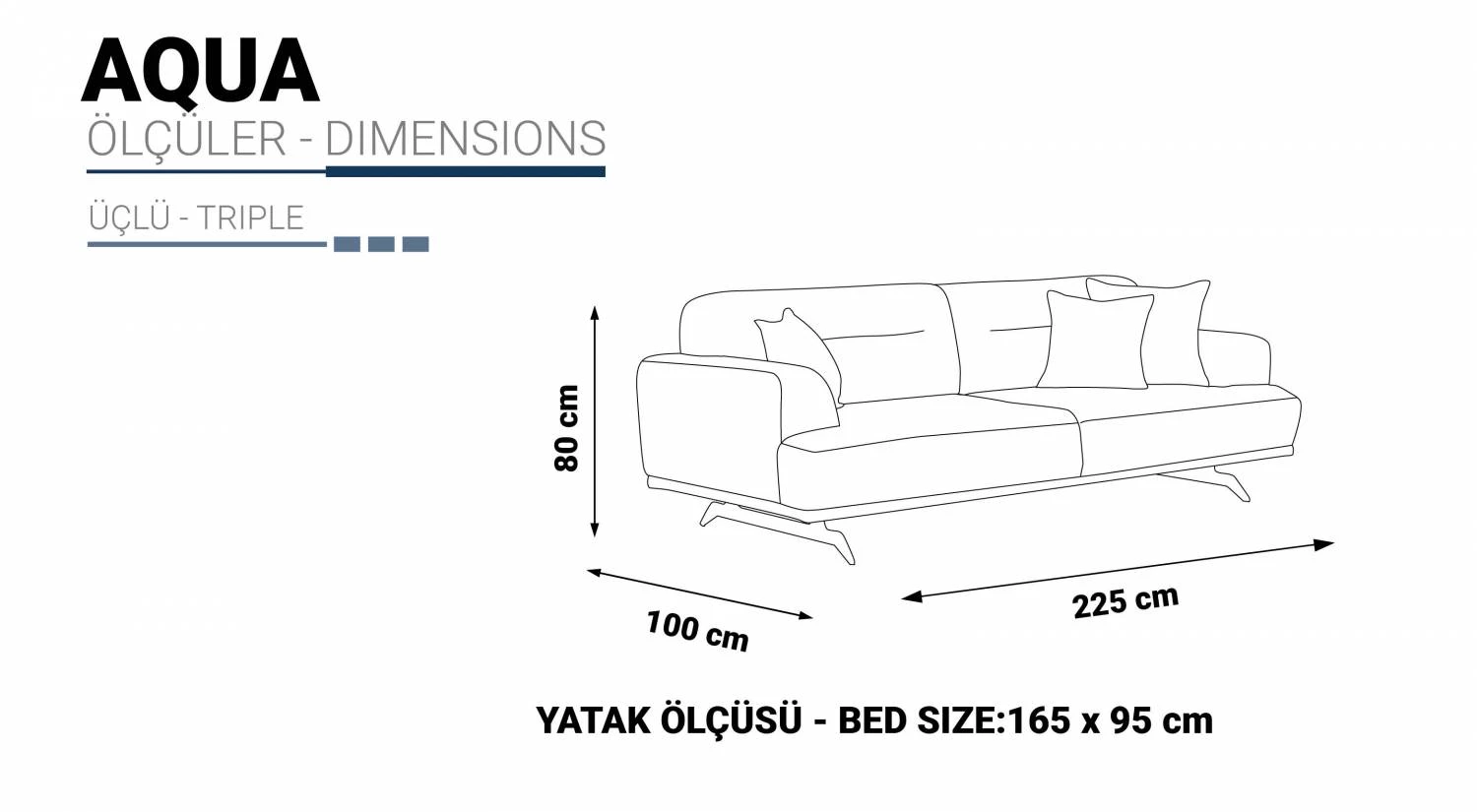 Aqua Serisi Long Üçlü Koltuk – Gri