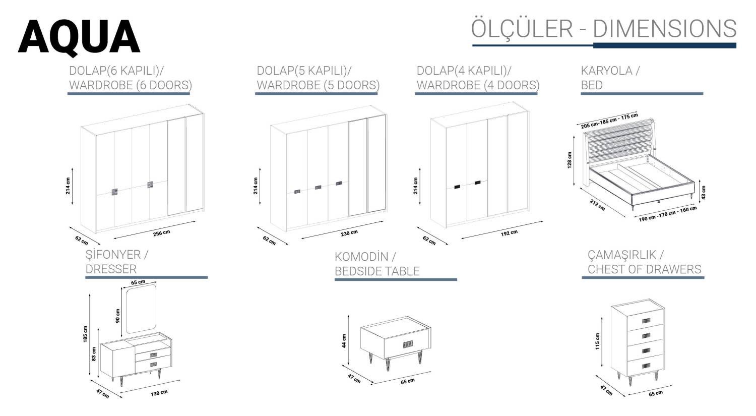 | Aqua Şifonyer | 130 cm | 47 cm | 185 cm |