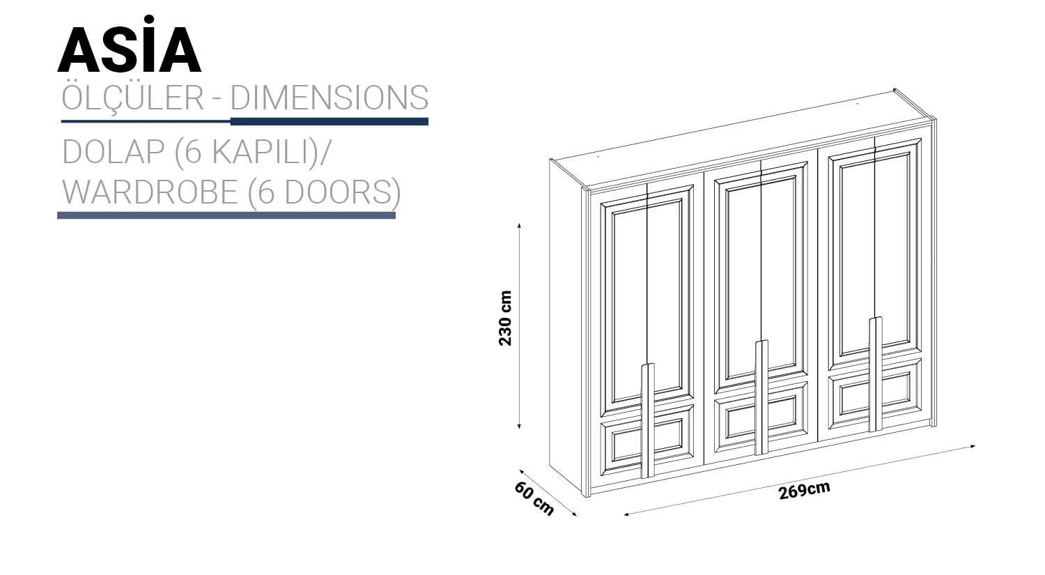 Asia Serisi 6 Kapılı Dolap