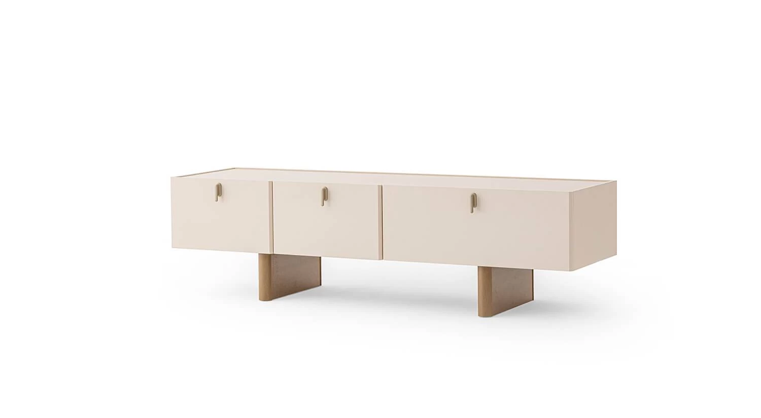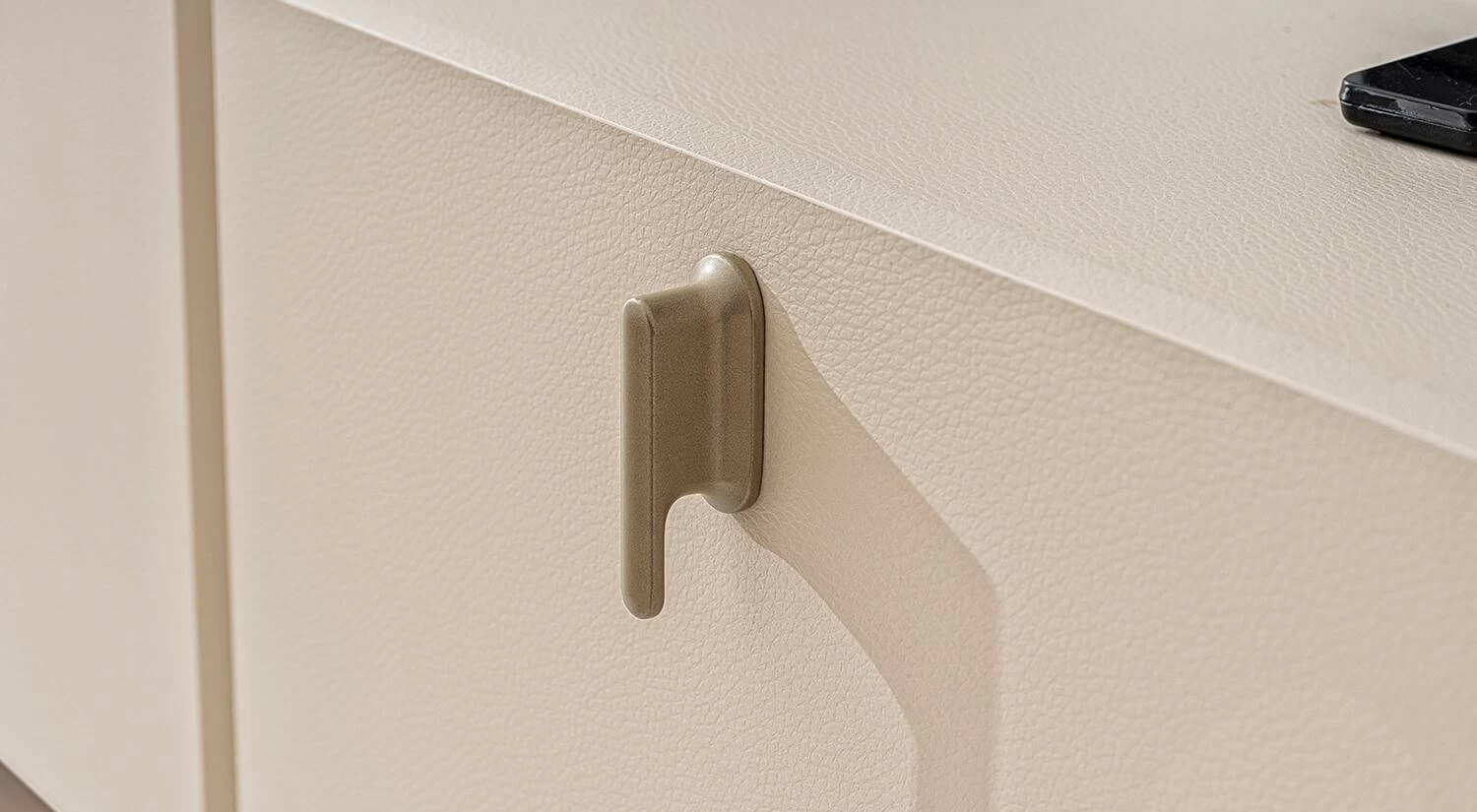 Tüm kapak ve gövde elemanları 1. kalite melamin kaplı yonga levhadan üretilmiştir. Alt blok üst tablasında vizon deri yüzey kaplama, metal bronz tonlu kulplar ve MDF profil ayak detayları ünitenin estetik değerini güçlendirir.
