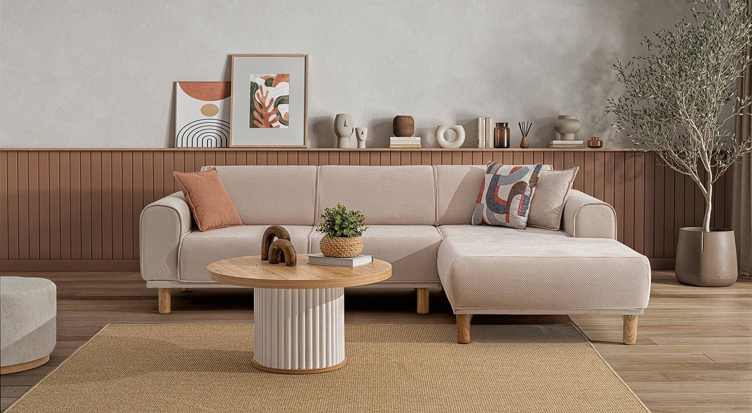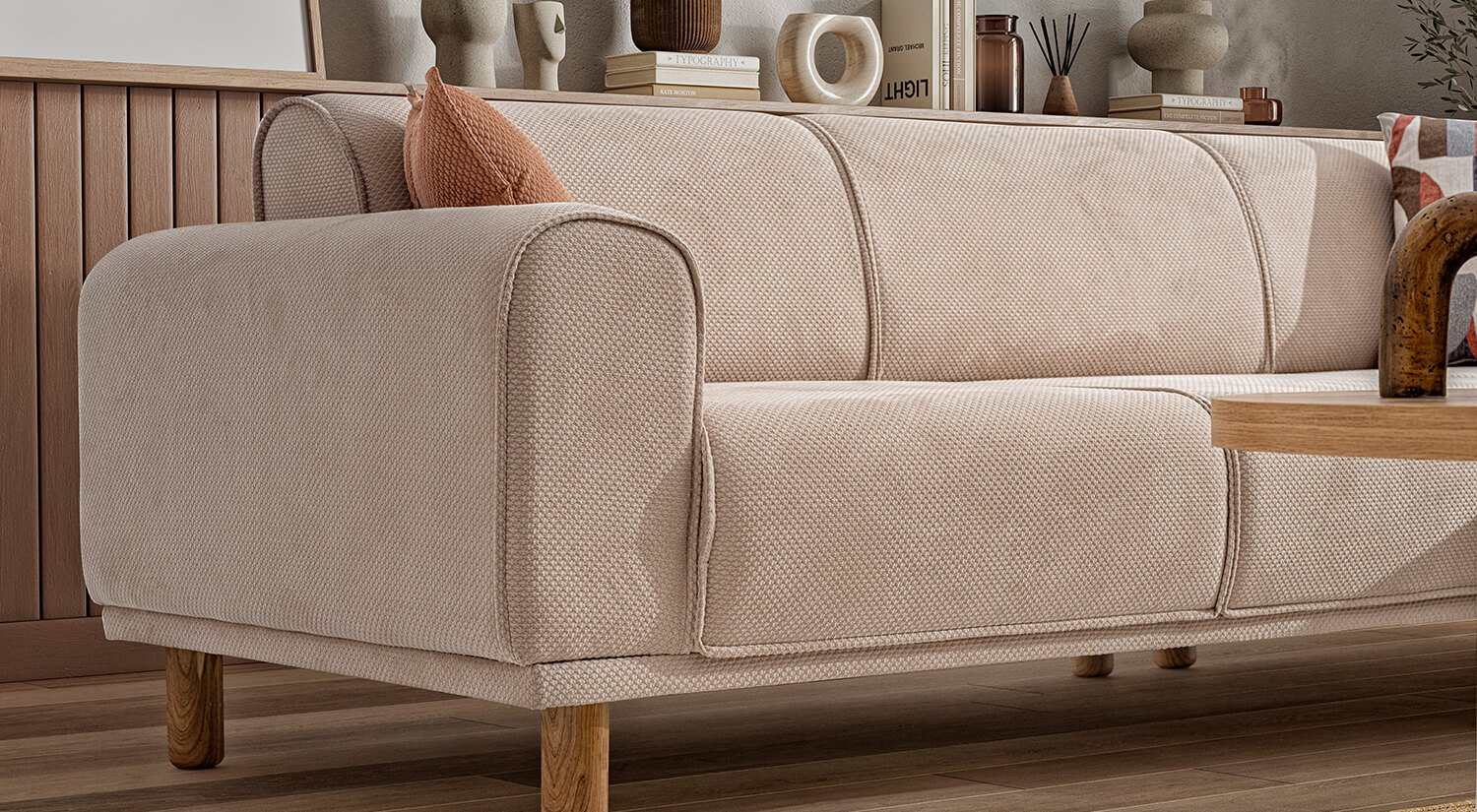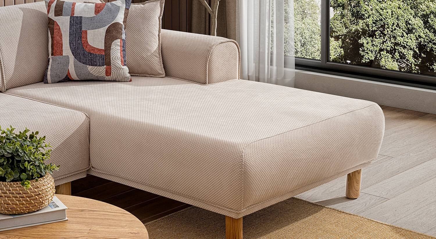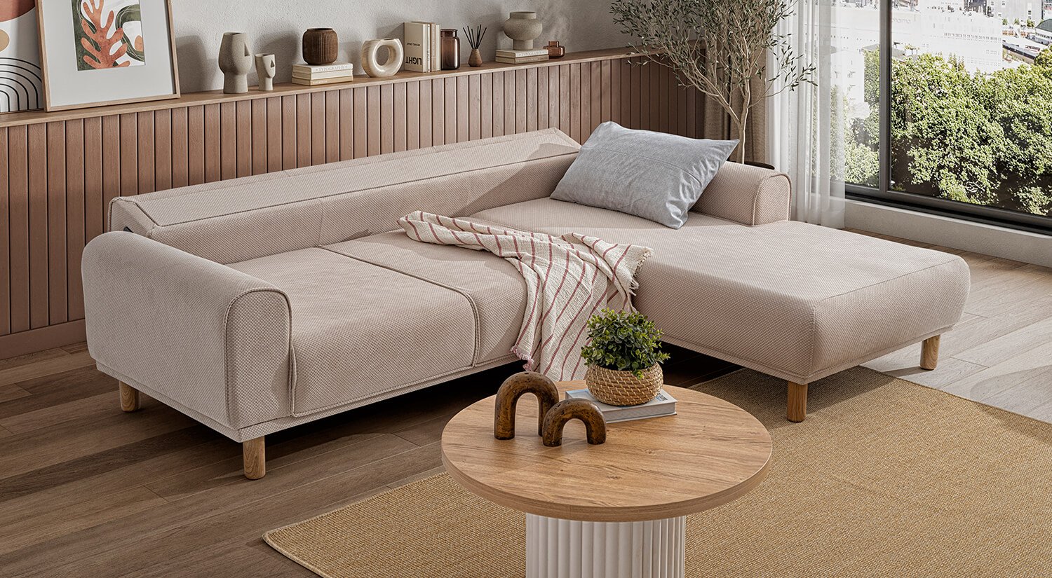 Bera Köşe Takımı yalın ve modern çizgilerle tasarlanmıştır. Minimalist estetiği ile farklı dekorasyon stilleriyle kolay uyum sağlar.