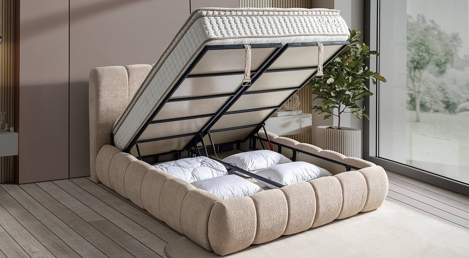 Havuzlu baza sayesinde yatak baza içinde sabitlenir; boşluk ve kayma oluşmaz, bu da kullanımda stabilite ve rahatlık oluşturur. Baza metal profil iskelete sahiptir ve emniyet kilidi ile dengeleyici sistem içerir.