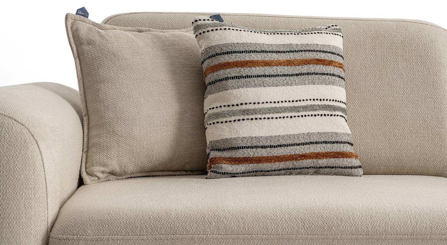 Bodrum Koltuk Takımı sade ama etkileyici bir estetik sunar. Özel dokuma kumaş yapısı salon dekorasyonunda hem modern hem de bohem bir his yaratır.