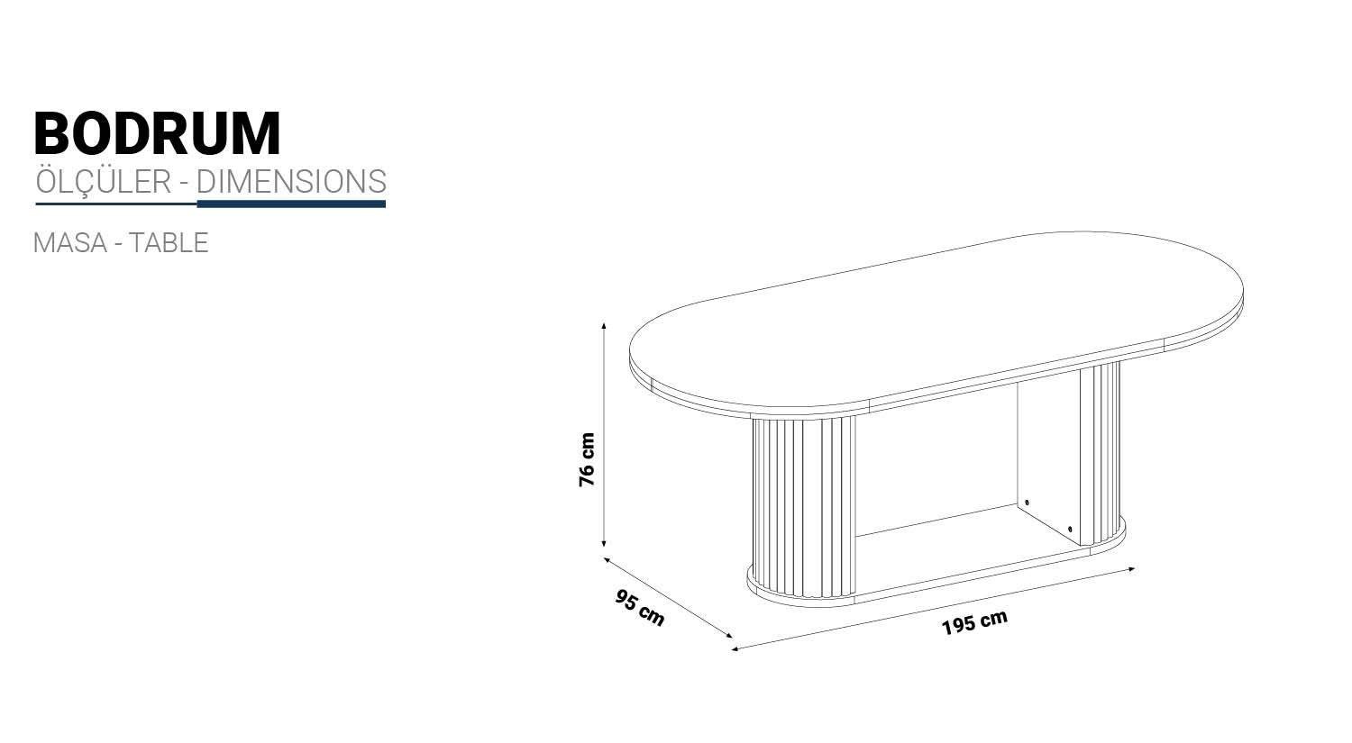 Bodrum Sabit Yemek Masası 195 cm 95 cm 76 cm