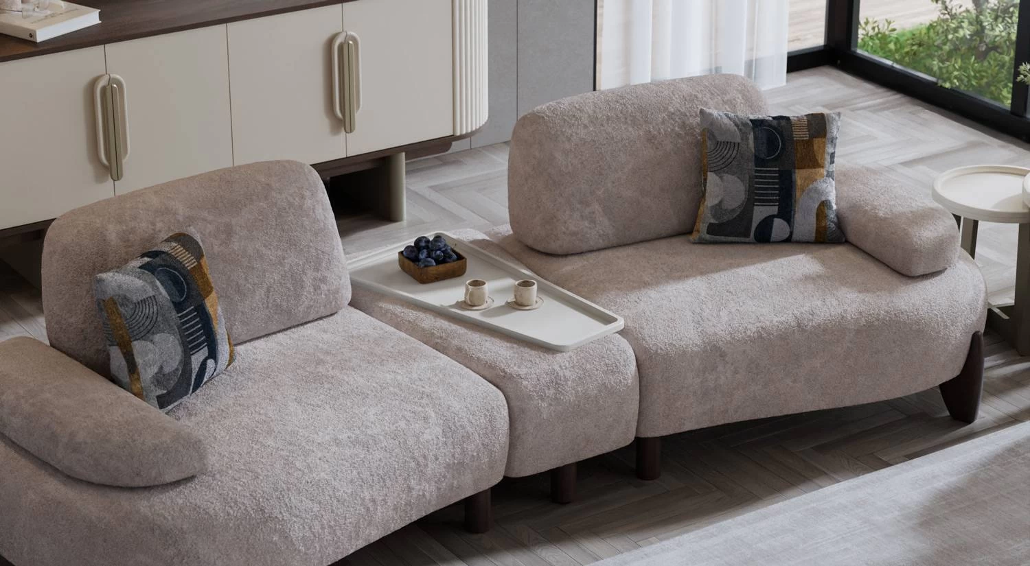 Bolivya Koltuk Takımı, birleştirilebilir koltuk modülleri, sehpa ve berjer seçenekleri ile farklı yaşam alanlarına göre düzenlenebilir bir sistem sunar.