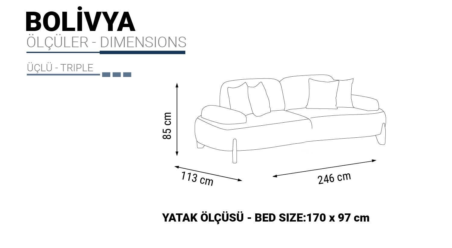 Aqua Serisi Long Üçlü Koltuk – Gri