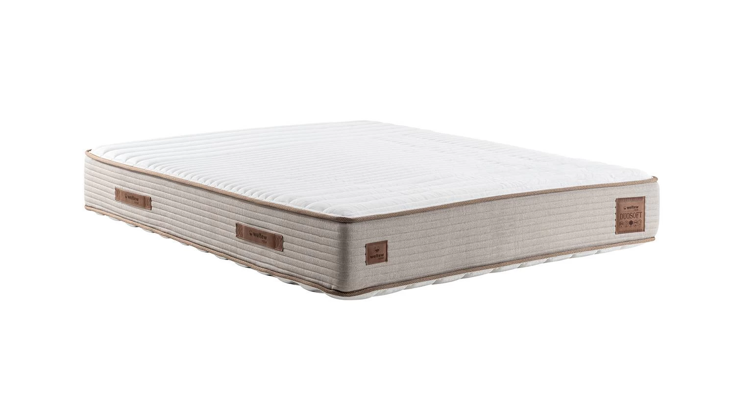 Duosoft yatakta bağımsız paketlerde yerleştirilen yaylar, vücut basıncını eşit dağıtarak omurganın doğru pozisyonda kalmasına yardımcı olur ve çiftlerin uyku esnasında birbirlerini daha az hissetmesini sağlar.