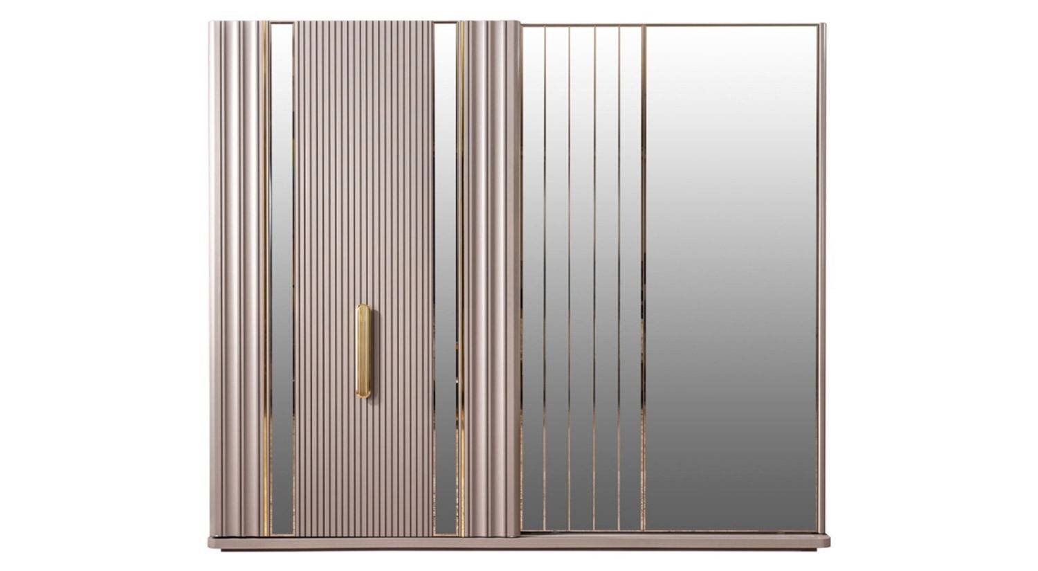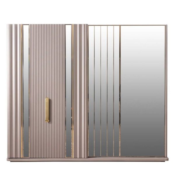 Florya Yatak Odası, modern ve lüks detaylara sahip, geniş depolama çözümleri arayan kullanıcılar için ideal bir takımdır. Zarif kumaş başlık, yumuşak tonlar ve altın detaylar ile yatak odanızda hem estetik hem fonksiyonel bir atmosfer sağlar.