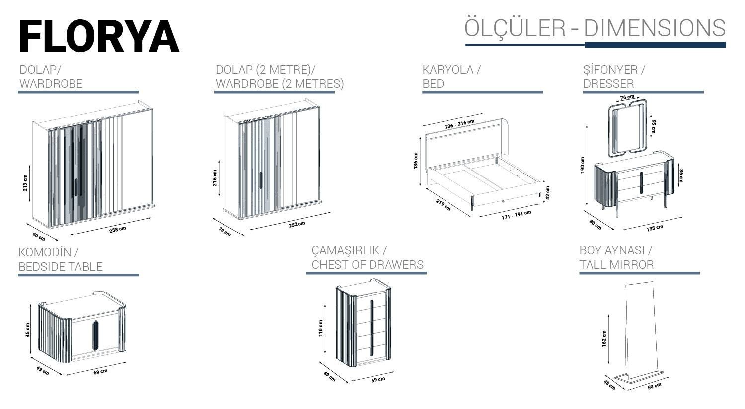 Florya Yatak Odası, odanıza ücretsiz montaj hizmeti ile teslim edilir ve 2 yıl garanti kapsamındadır.