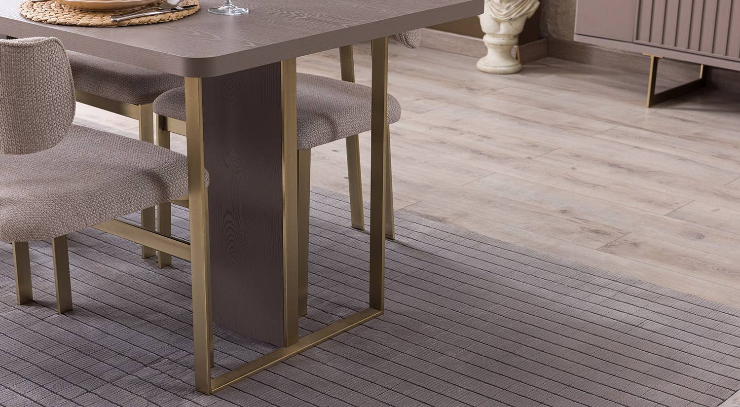 Latte Yemek Odası’nda sabit yemek masası 160 × 90 cm veya daha geniş 180 × 95 cm ölçü seçenekleri ile farklı ihtiyaçlara yanıt verir.