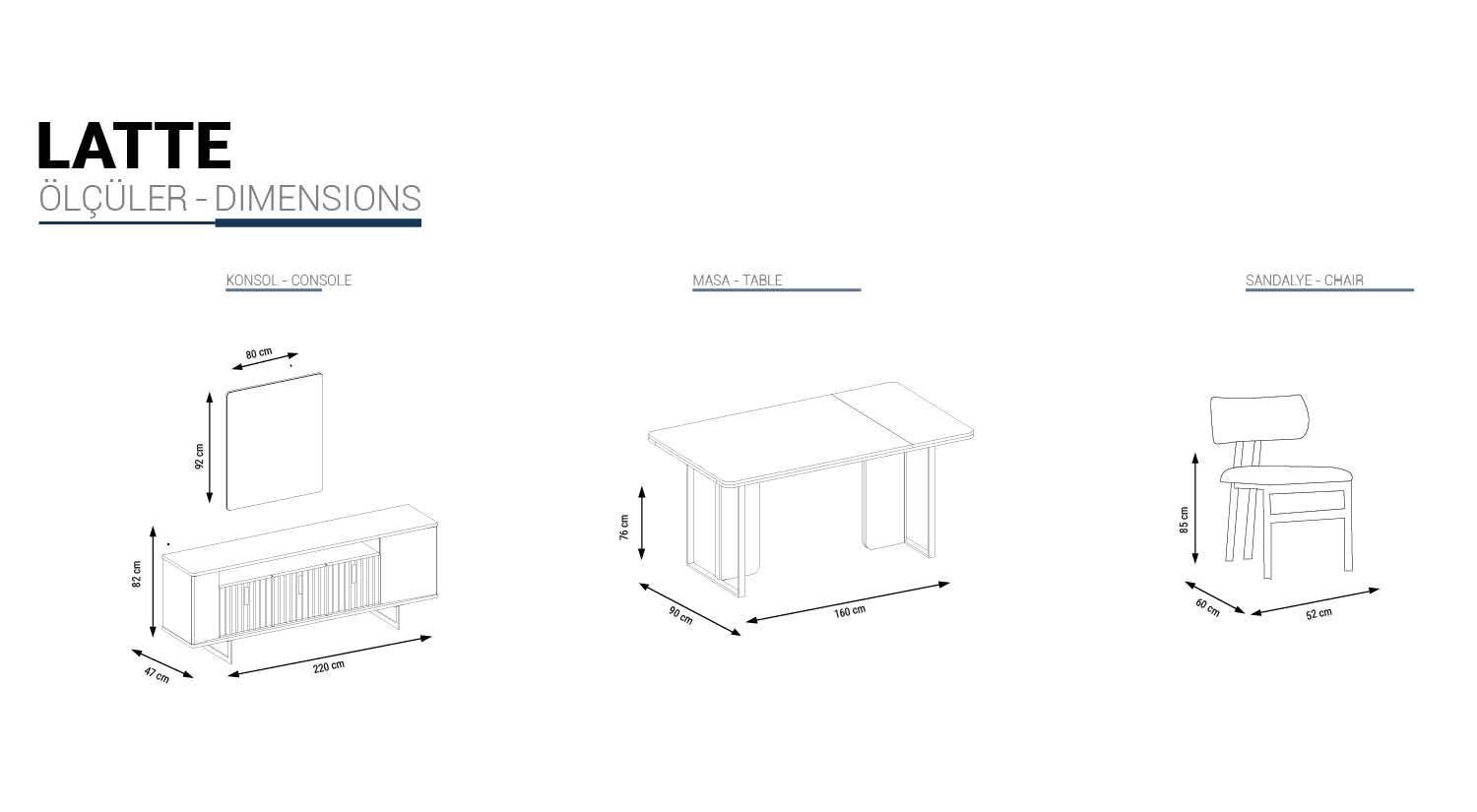 | Latte Konsol Alt Blok | 220 cm | 47 cm | 82 cm |