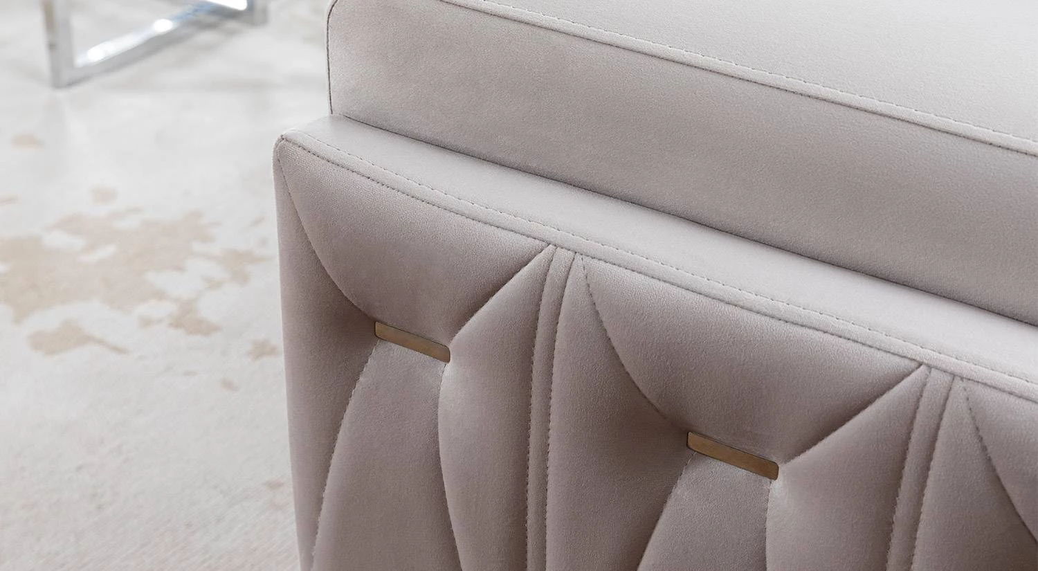 Döşemede kullanılan kadife kumaş günlük kullanıma uygun ve silinebilir yapıda tasarlanmıştır; bakım ve temizlik işlemleri kolaydır.