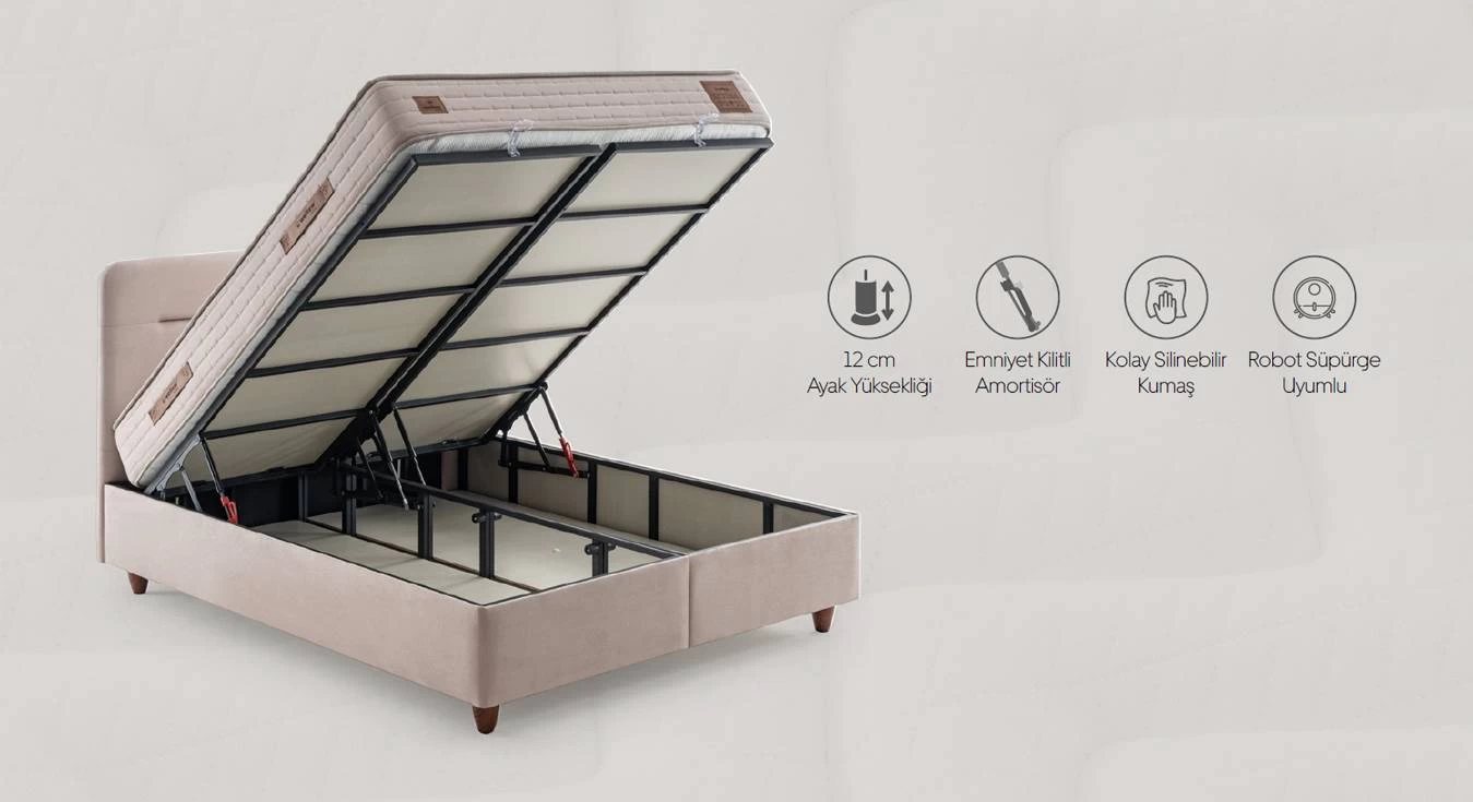 Yatak yüzeyinde kullanılan hava alan kumaş terlemeyi azaltarak serin ve ferah bir uyku ortamı sağlar; kumaş aynı zamanda dayanıklı ve uzun ömürlüdür.