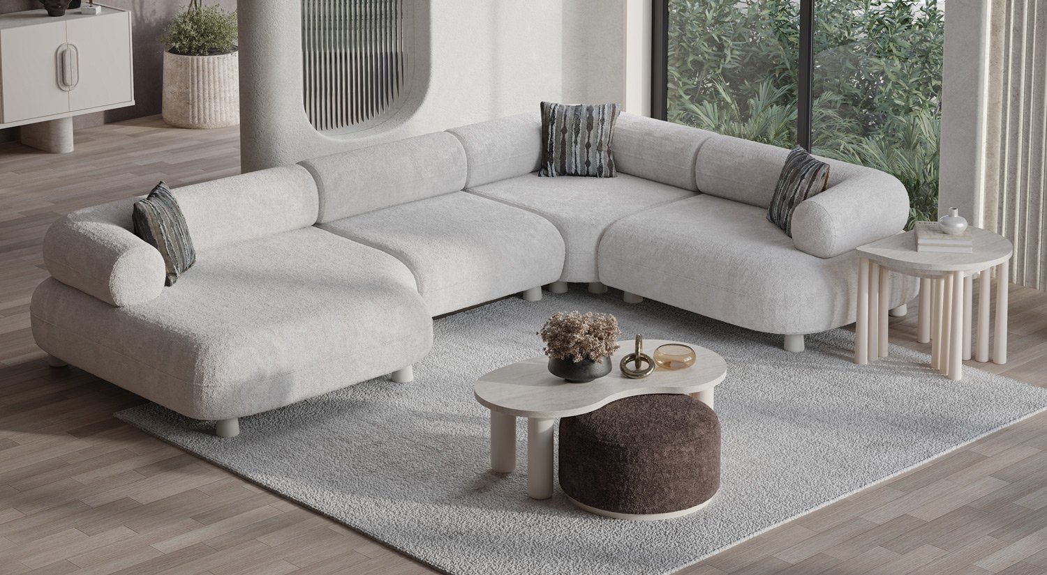 Traverta Köşe Takımı, çeşitli modüllerle kombine edilebilir. Sağ kollu, sol kollu amorf modül seçenekleri, kolsuz tekli modül, köşe modül ve ara ikili gibi parçalarla farklı oturma düzenleri oluşturulabilir. Bu esneklik, kullanıcıya kişiselleştirilmiş kullanım imkanı sunar.